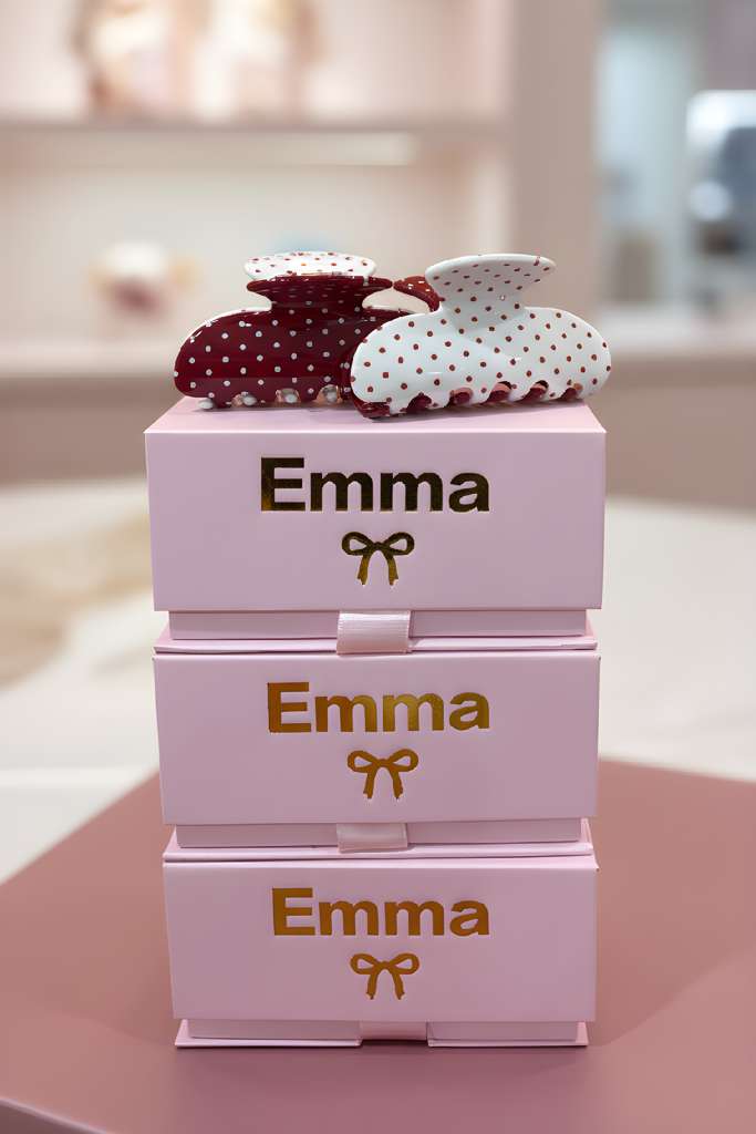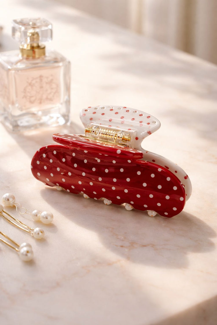 A timeless mix of charm and sophistication, this burgundy and white polka-dot hair claw clip adds a refined pop of color to any hairstyle. Finished with a smooth glossy shine, it offers a secure yet comfortable hold while bringing playful elegance to everyday looks.